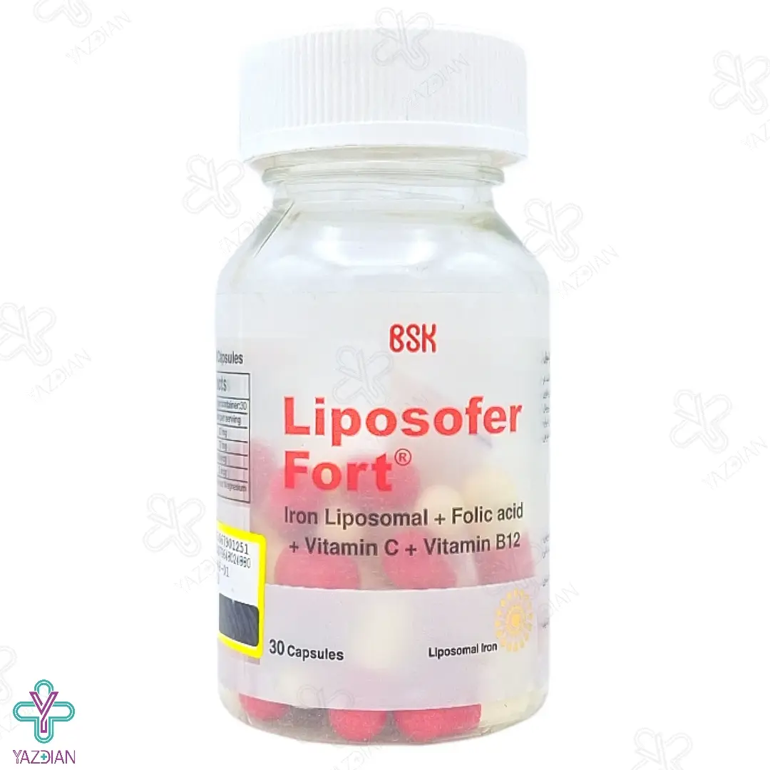 کپسول لیپوزوفر فورت بی اس کی (Liposofer Fort Iron BSK 30 Capsules) با دارا بودن آهن لیپوزومال، فولیک اسید، ویتامین های C و B12 در ترکیبات خود، به بهبود خون رسانی به بدن کمک کرده و بدین گونه از کم خونی ناشی از فقر آهن و اسید فولیک پیشگیری می کند.