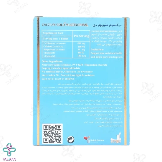 قرص کلسیم منیزیم دی کلسیم گلد (Shahab Darman Calcium Gold Multinormal 45 Tablets) با دارا بودن کلسیم، منیزیم، ویتامین D3 و ویتامین K2 در ترکیبات خود می تواند سلامت استخوان ها و دندان ها را حفظ کرده و تقویت نماید و همچنین از ابتلا به پوکی استخوان جلوگیری کند. این قرص یکی از بهترین داروها برای تقویت استخوان و مفاصل می باشد.