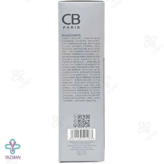 علت های مختلفی مثل اختلالات هورمونی، نوع تغذیه، عفونت های موضعی، بارداری، نور آفتاب و غیره باعث به وجود آمدن لک بر روی پوست صورت می شوند که لازم است تا درمان شود به همین دلیل استفاده از یک محصول مناسب توصیه می شود، کرم ضد لک و روشن کننده پوست صورت سی بی پاربس (CB paris anti - blemish and skin lightening cream - 30 ml) پوست را درخشان و روشن می کند و لک های مقاوم به درمان مانند ملاسما، کک و مک و لنتیگو را برطرف می کند، از دیگر ویژگی های این محصول این است که در آن از پارابن به هیچ عنوان استفاده نشده است به همین دلیل از به وجود آمدن حساسیت جلوگیری می کند، این کرم مناسب استفاده برای تمامی پوست ها بوده و تسکین دهنده و التیام بخش پوست است، آربوتین از ترکیبات به کار رفته در این کرم است که تیرگی های ایجاد شده در پوست را از بین برده و سبب یکنواخت شدن رنگ چهره می شود و هم چنین در جلوگیری از ایجاد لک های ناشی از اقدامات درمانی نقش تاثیرگذاری دارد، عصاره های گیاهی از دیگر ترکیبات موجود در این محصول بوده و به دلیل داشتن خواص ضد التهابی و آنتی اکسیدانی موثر و قوی از پوست در مقابل عوامل آسیب رسان محیطی حفاظت می کند.