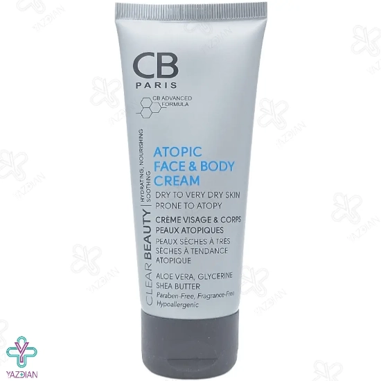 کرم مرطوب کننده صورت و بدن مناسب پوست خشک و خیلی خشک سی بی پاریس (Cb Paris Atopic Face and Body Cream 100 ml) پوست را به مدت طولانی مرطوب نگه می دارد. در این محصول از ترکیبات موثر و مفیدی مثل آلوئه ورا، گلیسیرین و شی باتر استفاده شده است که سبب تقویت و تغذیه ی پوست می شود.
