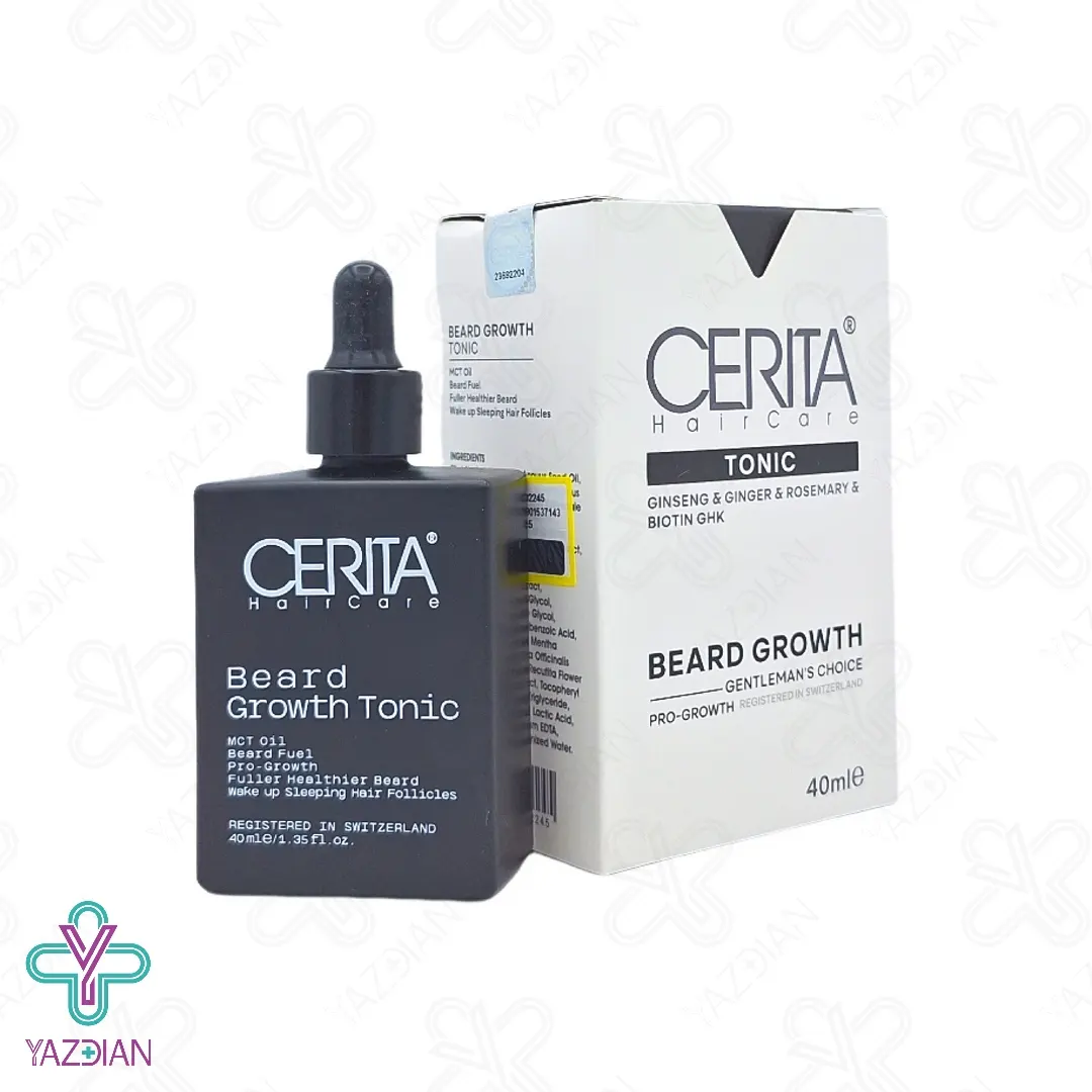 تونیک تقویت ریش سریتا (Cerita Beard Growth Tonic – 40 ml) رشد ریش را افزایش داده و باعث ایجاد ریش هایی پرتر و یکنواخت تر می شود، از دیگر ویژگی های این محصول این است که به دلیل داشتن مواد محرک و مغذی، ریش ها را براق تر و نرم تر می کند، زیاد شدن رشد ریش از طریق برطرف کردن التهابات اطراف ریش از دیگر خاصیت ای این تونیک است.