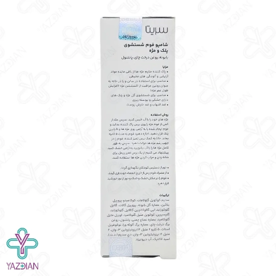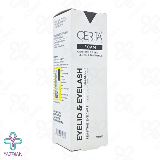 فوم شستشوی پلک و مژه سریتا (Cerita Eyelid and Eyelash Gentle and Deep – 60 ml) مواد آرایشی، آلودگی و ذرات معلق را از روی پلک و مژه پاک می کند، از دیگر ویژگی های این محصول این است که از به وجود آمدن عفونت و التهابات چشمی پیشگیری می کند، هم چنین تمامی افراد می توانند از این فوم شستشو استفاده کنند، در این فوم شستشو از اسانس، سولفات و پارابن به هیچ عنوان استفاده نشده است به همین دلیل سبب حفظ زیبایی مژه و سلامت چشمان می شود، عصاره ی بابونه از ترکیبات به کار رفته در این محصول است و هر نوع التهاب و قرمزی در قسمت چشم را برطرف می کند، روغن درخت چای نیز از دیگر ترکیبات موجود در این فوم بوده و پلک و مژه ها را از انواع باکتری ها و میکروب ها به خصوص عامل گل مژه پاک سازی می کند.