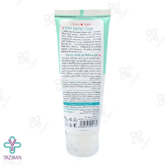 کرم محافظ پا کودک سینره (Cinere Baby Barrier Cream 75ML) به دلیل داشتن عصاره های گیاهی مثل بابونه، آلوئه ورا، کره کاکائو، روغن کالاندولا و روغن هسته ی زردآلو، یکی از بهترین محصولاتی است که سبب برطرف شدن ادرار سوختگی پای کودکان می شود.