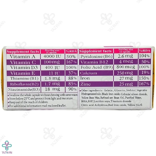 | فولیک اسید | ۸۰۰mcg | ۱۰۰% |