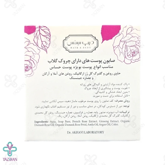 صابون گلاب دیپ سنس برای تمیز کردن پوست از انواع آلودگی ها و مواد آرایشی کاربرد دارد.
