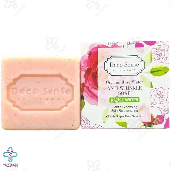 زمانی که پوست را از انواع آلودگی ها و مواد آرایشی و عرق پاک می کنید، پوست دوباره احیا و باز سازی می شود. برای این پاک سازی استفاده از یک محصول مناسب برای پوست توصیه می شود. صابون گلاب دیپ سنس مناسب پوست های دارای چروک (Rose Deep Sense Soap Suitable for Wrinkle skin 75 gr) پوست دست و صورت را از انواع آلودگی ها و مواد آرایشی تمیز می کند. این محصول سبب تقویت پوست شده و علاوه بر این که باعث خشکی پوست نمی شود، از به وجود آمدن چروک و پیری زود رس پوست نیز جلوگیری می کند.