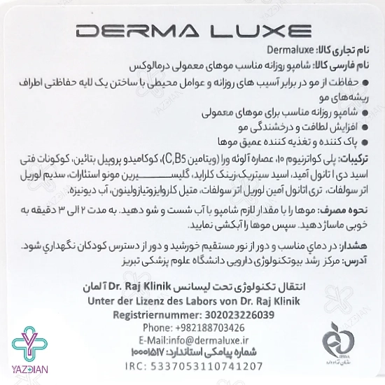 شامپو روزانه درمالوکس مناسب موهای معمولی (Derma Luxe Shampoo Daily For All Hair Types 300 ml) با دارا بودن عصاره آلوئه ورا به همراه ویتامین های C و B5 در فرمولاسیون خود قادر است نقش یک محصول تغذیه کننده و ویتامینه را به خوبی برای موهای شما ایفا نماید و ضمن محافظت از موهایتان در برابر عوامل محیطی، باعث تغذیه مناسب آن ها شده و لطافت، درخشندگی و زیبایی را برای موهای شما به ارمغان بیاورد. به همین خاطر خرید شامپو روزانه درمالوکس بسیار توصیه می شود.