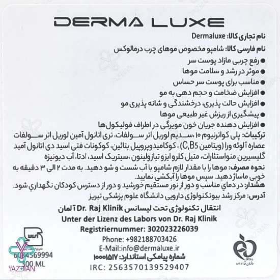 شامپو موی چرب درمالوکس ( Derma Luxe Shampoo For Oily Hair 300 ml) با دارا بودن عصاره آلوئه ورا و پرو ویتامین B5، به همراه فرمولاسیون ضد چربی خود می تواند چربی پوست سر و موها را به حالت تعادل رسانده و جریان خون رسانی در پوست سر را نیز افزایش دهد. این شامپو تقویت کننده و تحریک کننده رشد موها بوده و می تواند ضخامت تارهای شکننده و نازک موها را افزایش دهد.
