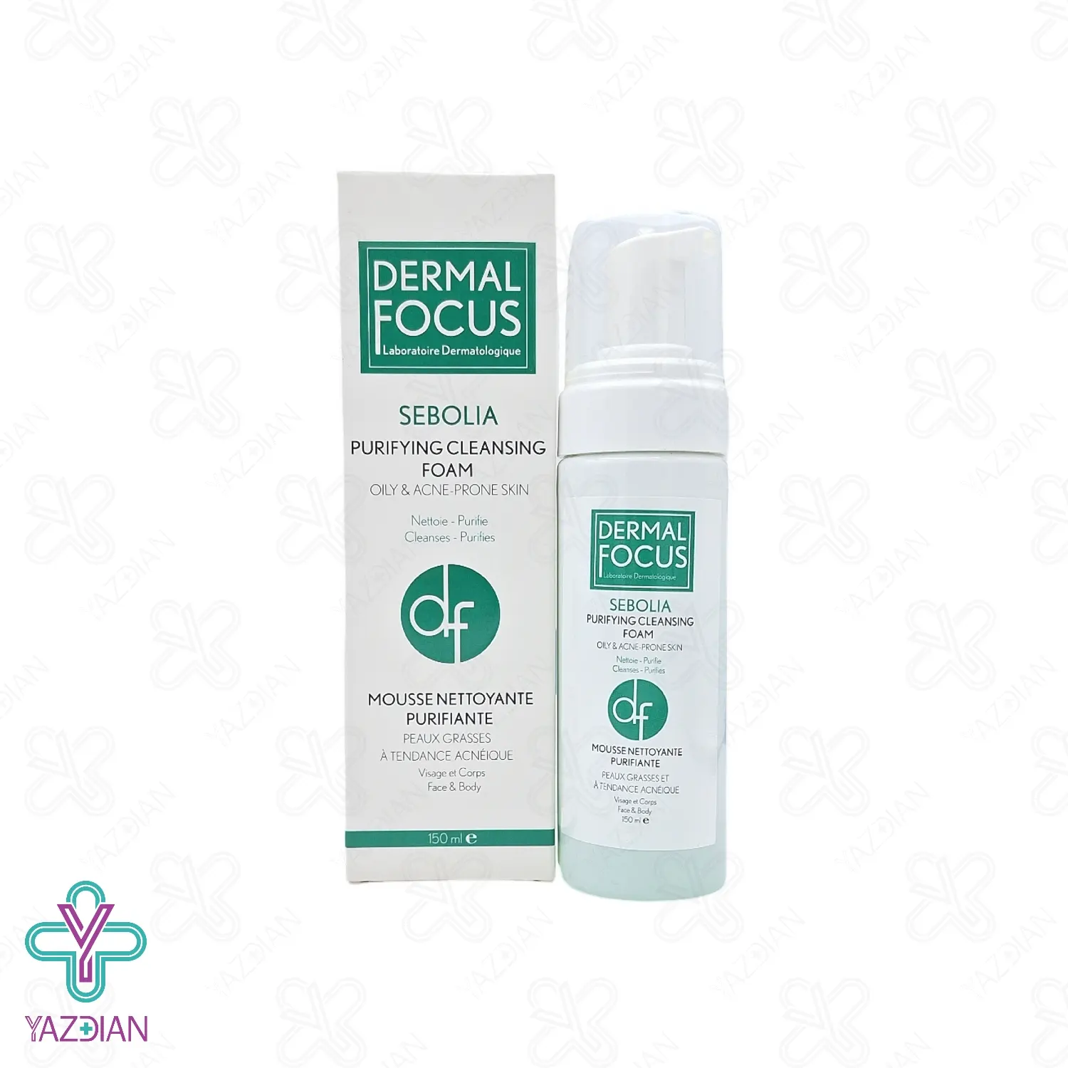 فوم شستشوی صورت چرب و آکنه ای سبولیا درمال فوکوس - 150 میلی لیتر (Dermal Focus Sebolia Purifying Cleansing Foam for Oily and Acne 175 ml) ضمن پاکسازی کامل و عمقی پوست از آرایش، آلودگی های محیطی و چربی های اضافه، خواص آنتی باکتریالی نیز داشته و پوست را ضد عفونی نیز می کند. بعلاوه با کنترل ترشح چربی پوست، مانع از بروز جوش و آکنه های پوستی می شود. این فوم فاقد مواد مضر از جمله سولفات و پارابن می باشد.