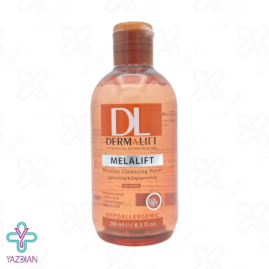 محلول پاک کننده آرایش میسلار واتر روشن کننده ملالیفت درمالیفت - 250 میلی لیتر (Dermalift Micellar Water Melalift Solution Lightening Skin ۲۵۰ml) با فرمولاسیون ویژه و منحصر به فرد خود سبب شده است تا به یک محصول تخصصی مراقبت پوستی تبدیل شود. ان میسلار واتر برند ملالیفت درمالیفت ضمن پاکسازی کامل پوست صورت، چشم و لب ها از میکاپ و آلاینده های محیطی، از بین برنده عالی لک، تیرگی و آلودگی های پوستی است و پوست تان را روشن و شفاف می کند. این محلول فاقد مواد حساسیت زا است و به هیچ وجه باعث آلرژی و التهابات پوستی نمی شود.