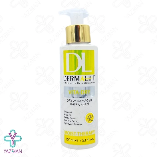 کرم موهای خشک و آسیب دیده ویتادرای درمالیفت - 150 میلی لیتر (Dermalift Vita Dry and Damage Hair Cream 150ml) فرموله شده جهت استفاده پس از حمام می باشد و نیاز به آبکشی ندارد. این کرم از دسته محصولات مراقبت از مو می باشد که با بهره گیری از روغن کرامب، به خوبی ساقه مو ها را آبرسانی و مرطوب می کند و از بروز موخوره و گره خوردگی جلوگیری می کند. بافت این محصول به گونه ای است که به سرعت جذب مو می شود و با ایجاد یک لایه محافظتی گسترده روی موها، از موها در برابر حرارت ناشی از آفتاب، سشوار، اتو مو و ... محافظت بالایی می کند.