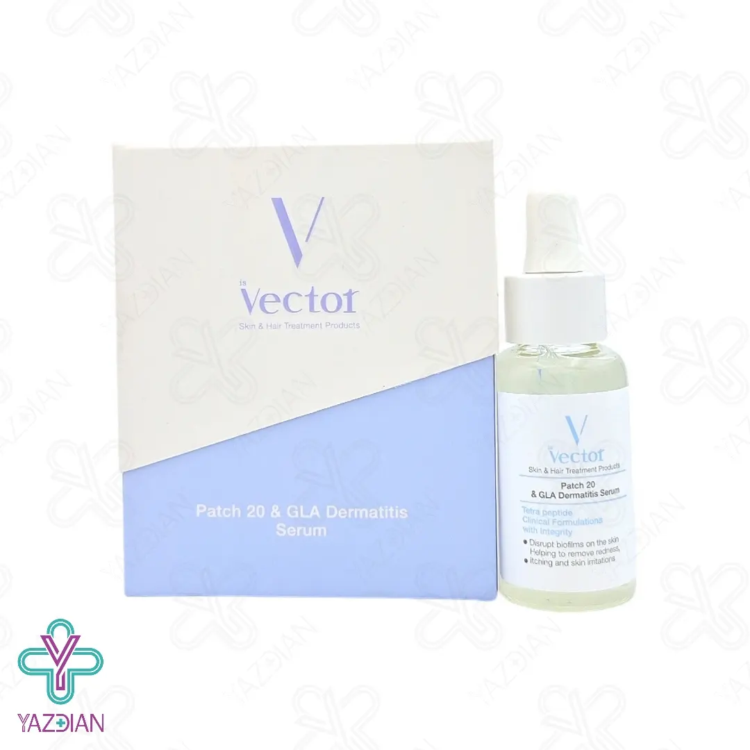 درماتیت یک نوع بیماری پوستی می باشد که در آقایان بیشتر خانم ها رواج داشته که منجر به ایجاد بثورات قرمز رنگ و پوسته پوسته شدن می شود که در پوست سر، کناره های بینی، ابروها، پلک ها، پشت گوش و میانه قفسه سینه بیشتر این اتفاق می افتد، برای درمان و کاهش علائم این بیماری پوستی داروهای موثری وجود دارد سرم درماتیت 20% PATCH وکتور (Dermatit serum 20% PATCH Vector – 30 ml) با ترکیبات موثری که دارد موجب کاهش التهابات و بهبود خارش این بیماری شده، این محصول ضد قارچ و ضد باکتری نیز می باشد و هم چنین ضد التهاب بوده و دارای تاثیر آرام بخشی و تسکین دهندگی پوست را نیز دارا می باشد،این محصول ترشح سبوم پوست را نیز کنترل می کند. نیاسینامید از ترکیبات موجود در این محصول می باشد که روشن کننده بوده و از انتقال ملانین به لایه های سطحی پوست جلوگیری می کندو ضمن بهبود بافت های آسیب دیده بدن موجب می شود رنگ دانه های پوست به حالت اولیه بازگردند، سالیسیلیک اسید نیز از دیگر ترکیبات موجود در این محصول می باشد که موجب لایه برداری پوست شده و ترشح چربی پوست را نیز کنترل می کند، روغن هسته انگور موجود دراین محصول نیز با دارا بودن خواص آنتی اکسیدانی از پوست محافظت کرده و هم چنین دارای خواص ضد التهاب و ضد باکتری نیز می باشد.