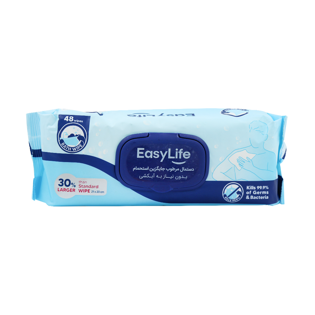 دستمال مرطوب جایگزین حمام ایزی لایف - 48 عددی