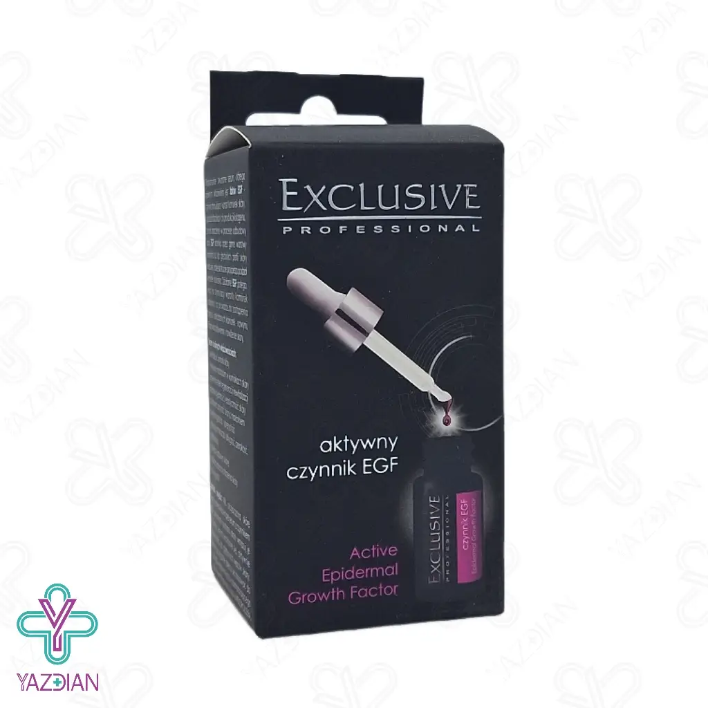سرم ضد چروک صورت EGF اکسکلوسیو (EGF Exclusive Anti – wrinkle facial serum – 15 ml) دارای EGF بوده که عنصر رشد پوستی می باشد و یک نوع پروتئین بوده که در بدن انسان وجود دارد این پروتئین موجب تحریک رشد سلولی شده و در بازسازی ، کلاژن سازی، تغذیه و رطوبت رسانی پوست موثر می باشد EGF به صورت عمقی به لایه خارجی پوست نفوذ کرده و موجب تقسیم سلول در آن ناحیه می شود و با تحریک سلول سازی در آن ناحیه موجب شده تا سلول های آسیب دیده و فرسوده از بین رفته و سلول های جدید جایگزین شود این محصول موجب درمان انواع زخم ها شده و در جوان سازی پوست بسیار موثر می باشد سرم ضد چروک اکسکلوسیو دارای خاصیت التیام بخشی بوده و موجب لطافت پوست نیز می شود و موجب بهبود استحکام و خاصیت ارتجاعی پوست می شود و چین و چروک های پوست را کاهش می دهد.