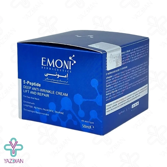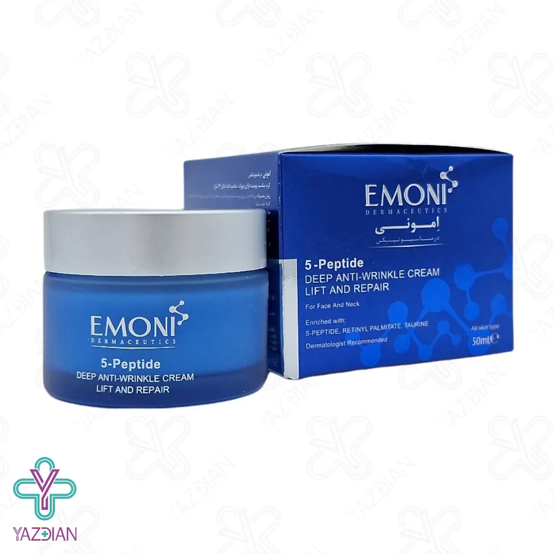 پوست افراد پس از 25 سالگی به دلایل مختلف مثل نور خورشید، افزایش سن، عوامل محیطی و غیره الاستین و کلاژن و به دنبال آن خاصیت ارتجاعی خود را از دست داده و دچار مشکلاتی مثل به وجود آمدن چین و چروک در پوست می شود به همین دلیل استفاده از یک محصول مناسب برای برطرف شدن این مشکل پوستی توصیه می شود کرم ضد چروک 5 پپتاید بالای 34 سال امونی (Emoni Peptide Deep Anti Wrinkle Lift And Reapair Cream – 50 ml) سبب بهبود خطوط و چین و چروک های ایجاد شده در پوست می شود، از دیگر ویژگی های این محصول این است که با تقویت پوست سبب سرعت بخشیدن در ترمیم آن هم می شود، این کرم مواد مغذی و رطوبت لازم برای پوست را فراهم کرده و به همین دلیل باعث نرمی و لطافت پوست می شود، اگر از این محصول به صورت دائم استفاده کنید از به وجود آمدن چروک های جدید جلوگیری کرده و پوست را سالم و جوان نگه می دارد، تائورین از ترکیبات به کار رفته در این محصول است که در جوان سازی پوست تاثیر زیادی داشته و هم چنین باعث حفظ رطوبت در پوست نیز می شود، پپتیدها از ترکیبات مهم در این کرم بوده که پروتئین های خاص مورد نیاز پوست مثل کلاژن را می سازد.