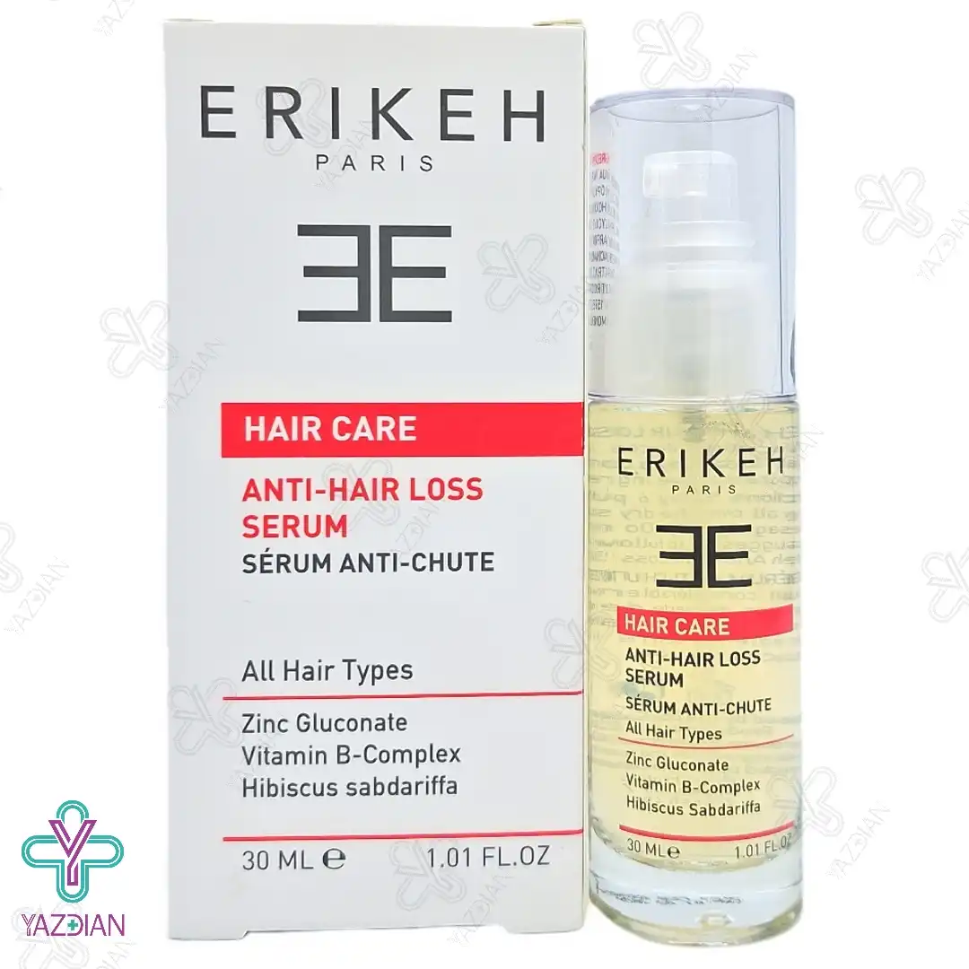 سرم ضد ریزش مو اریکه (Erikeh Anti Hair Loss Serum 30 ML) با ترکیبات منحصر به فرد خود، برای درمان ریزش مو به کار می رود. این محصول کمک به بازسازی و ترمیم موی سر کرده و سبب مرطوب شدن مو، تغذیه ی فولیکول مو و جلوگیری از ایجاد التهاب می شود.