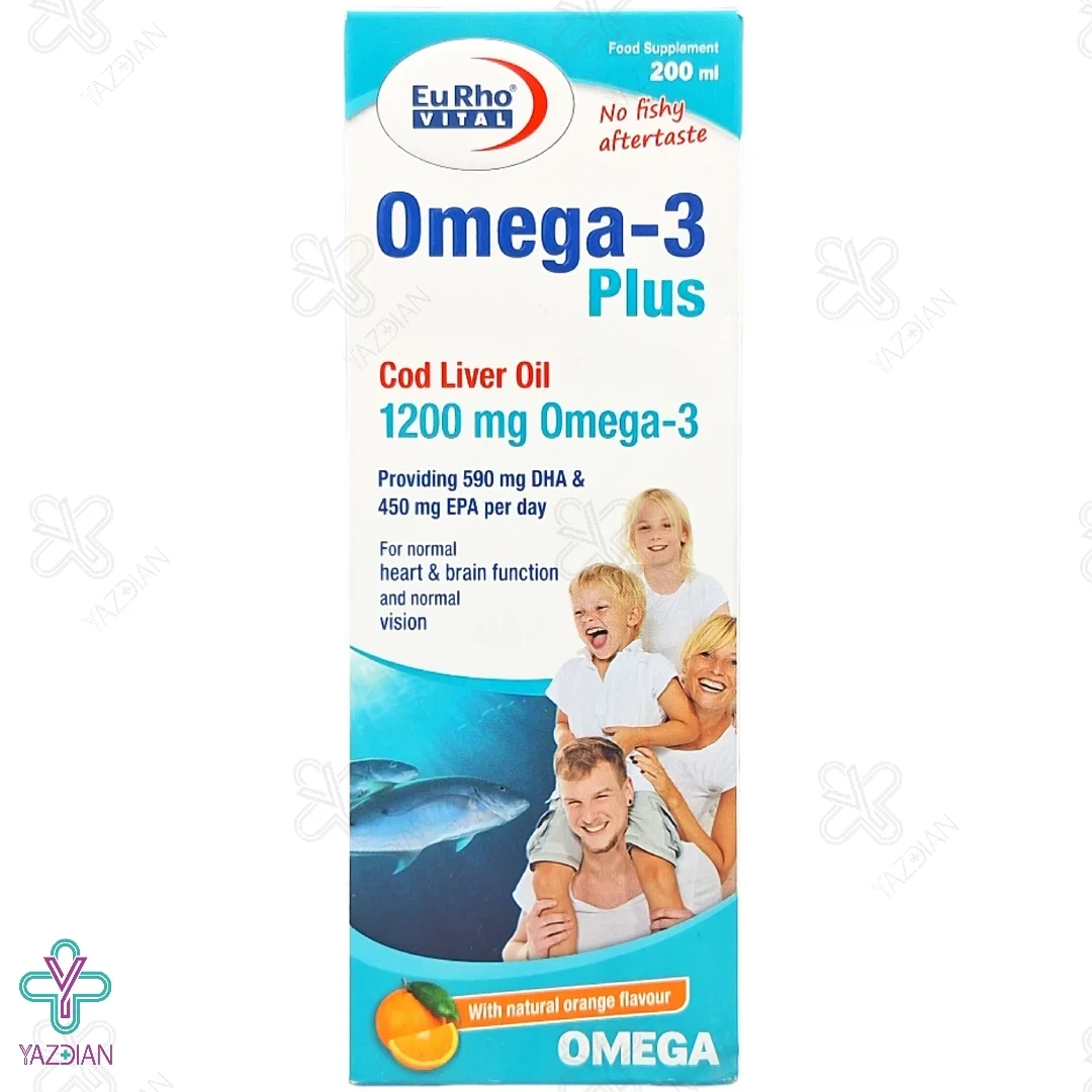 شربت امگا 3 پلاس یوروویتال (Eurho Vital Omega 3 Plus 200 ml) با دارا بودن مقادیر فراوانی از روغن کبد ماهی به همراه ویتامین های A، E و D در ترکیبات خود می تواند عملکرد طبیعی مغز و قلب را حفظ نموده و رشد ذهنی و جسمی کودکان و نوجوانان را بهبود ببخشد.