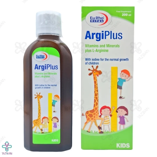 شربت تقویت رشد کودکان آرژی پلاس یوروویتال (EurhoVital Argi Plus Syrup 200 ml) یکی از بهترین مولتی ویتامین برای رشد قد کودکان می باشد که به پاکسازی رادیکالهای آزاد از خون، تقویت و تکثیر هورمون رشد، تقویت عملکرد سیگنالهای عضلانی بدن، افزایش کلسترول خوب، کاهش فشار خون و تنظیم سطح چربی خون کمک بسیاری میکند. از شربت تقویت رشد کودکان آرژی پلاس برای کمک به بهبود ترشح بهتر هورمون رشد که باعث رشد بهتر استخوان و افزایش قد خواهد شد استفاده میشود.