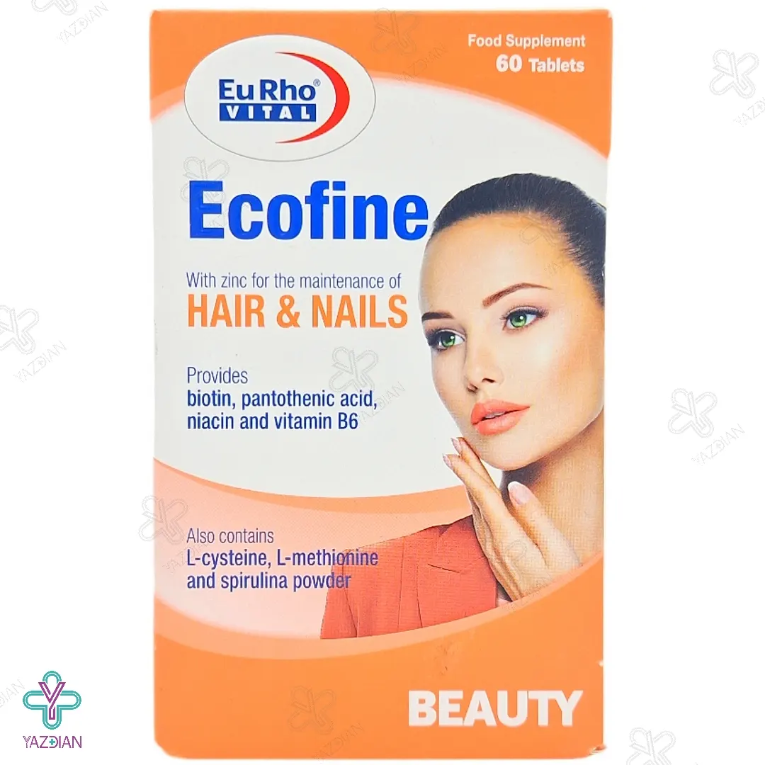قرص تقویت پوست مو اکوفاین یوروویتال (Eurhovital Ecofine 60 Tablets) دارای ترکیبات مؤثری بوده و می تواند پوست، مو و رشد ناخن را تقویت نماید. همچنین با مصرف این مکمل، سیستم ایمنی بدن تقویت شده و از ابتلا به انواع بیماری ها جلوگیری به عمل می آید.