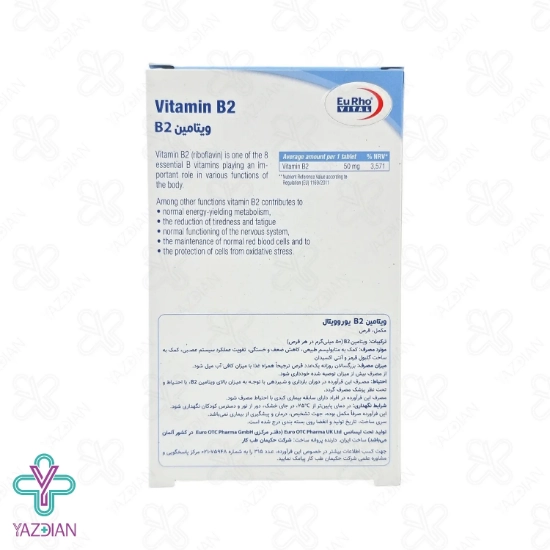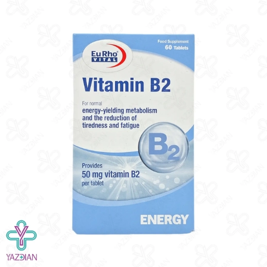 قرص ویتامین ب 2 یوروویتال (Eurhovital Vitamin B2 – 60 Tablets) یک مکمل غذایی بوده و برای زیاد شدن میزان انرژی بدن و کم شدن ضعف و خستگی مصرف می شود.