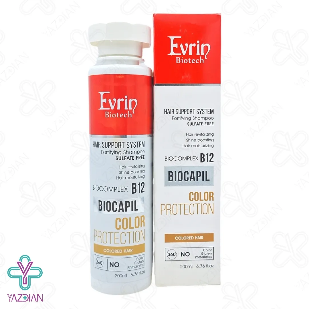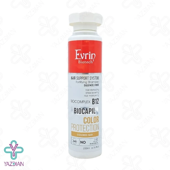 شامپو فاقد سولفات موهای رنگ شده اورین - 200 میلی لیتر(Evrin Biotech Fortifying Shampoo For Colored Hair 200ml) از دسته محصولات مراقبت از موها می باشد که با بهره گیری از بایوکمپلکس B12، به خوبی موهای آسیب دیده را ترمیم و بازسازی کرده و بهبود دهنده آسیب های ناشی از مواد شیمیایی و حرارت می باشد. بعلاوه با غنی بودن از روغن آرگان در ترکیبات خود، محافظت قدرتمندی از پوست و مو در برابر اشعه مخرب فرابنفش، شوره، حرارت و مواد کلردار می کند. بعلاوه رنگ مو را روی موهایتان تثبیت کرده و ماندگاری آن را دو چندان می کند. این شامپو با سرشار بودن از ترکیبات مرطوب کننده و آبرسان، رطوب مورد نیاز موها را تامین کرده و از خشکی، شکنندگی و دهیدراته شدن موها جلوگیری می کند.
