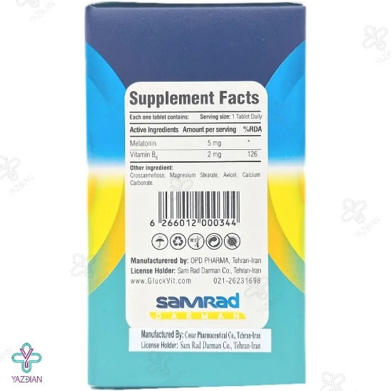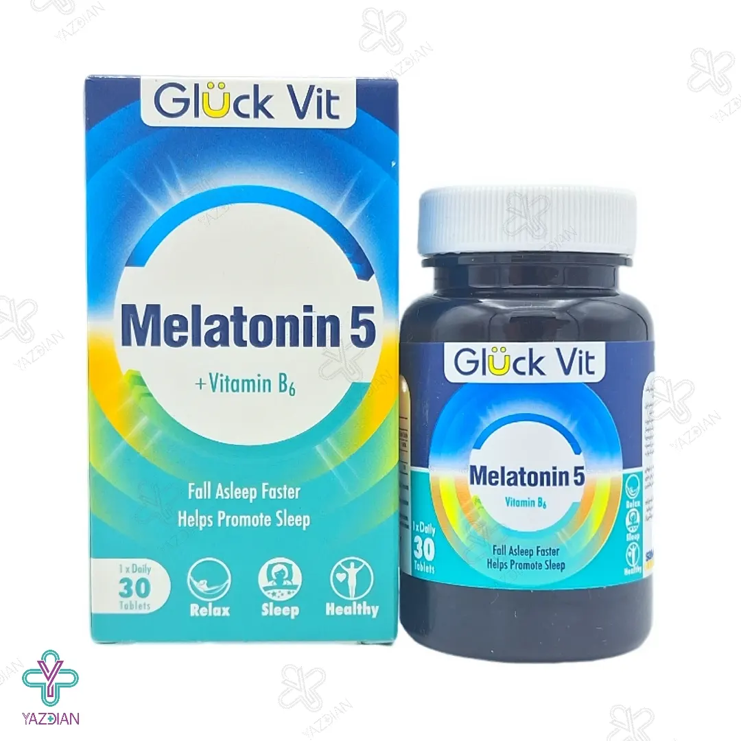 قرص ویتامین ب 6 ملاتونین 5گلوک ویت (Gluk Vit elatonin 5 And Vitamin B 6 30 Tabs) سبب می شود تا شخص یک خواب آرام و راحت داشته باشد. این قرص یک محصول بسیار مناسب است که در هر کدام از آن 5 میلی گرم ملاتونین و هم چنین مقداری ویتامین ب 6 موجود است.