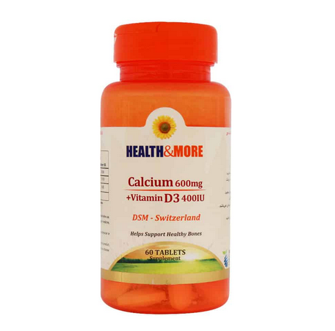 قرص کلسیم و ویتامین دی هلث اندمور (Health and more calcium and vitamin D tablets – 60 pcs) یک مکمل حاوی 600 میلی گرم کلسیم و 400 واحد ویتامین D3 می باشد که موجب حفظ سلامت استخوان ها، دندان ها و عملکرد صحیح سیستم عصبی – عضلانی می شود کلسیم در استخوان سازی بسیار ضروری بوده و وجود ویتامین دی در این محصول جذب این ماده معدنی را از روده آسان تر کرده و موجب تعادل کلسیم در خون می شود این محصول از کاهش توده استخوانی و پوکی استخوان جلوگیری کرده و یک گزینه ایده آل برای افراد سالمند می باشد در صورتی که بدن با کمبود کلسیم و یوتامین دی مواجه شود ضعف استخوان، افزایش شکستگی، پوکی استخوان، دردهای عضلاین و اختلال در رشد و عملکرد عضلات می شود این مکمل موجب تامین نیاز بدن و بهبود این شرایط می شود.