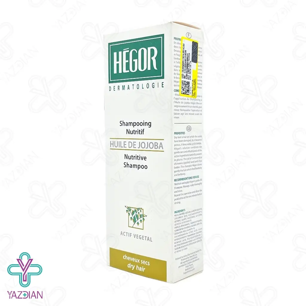شامپو تغذیه کننده مو روغن جوجوبا هگور - 150 میلی لیتر (Hegor Huile De Jojoba Shampoo Dry Shampoo 150 ml) غنی از ترکیبات مغذی و مرطوب کننده می باشد و آسیب دیدگی های ناشی از نور خورشید و حرارت ناشی از وسایل حرارتی از جمله سشوار، اتو مو و ... را ترمیم و بازسازی می کند.