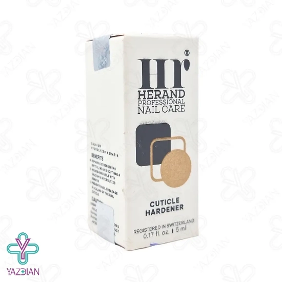 زیبایی ناخن ها تاثیر مستقیمی بر زیبایی دستان شما دارد و جهت استحکام ناخن ها باید تغذیه مناسب داشت ومراقبت اصولی از ناخن ها داشته باشیم اما تغذیه مناسب به تنهایی پاسخ گو نمی باشد و باید از محصولات بهداشتی مراقبتی جهت استحکام و تقویت ناخن ها استفاده کرد محلول استحکام بخش کوتیکول ناخن هراند (Herand Cuticle Hardener Nail Care – 5 ml) یک محصول مناسب جهت تقویت و ترمیم ناخن های شکننده، ضعیف و نرم می باشد و با دارا بودن ترکیبات مغذی و استحکام بخش موجب بازسازی و تقویت ساختار ناخن ها می شود و از شکنندگی و آسیب دیدگی آن ها جلوگیری می کند با استفاده از این محصول ناخن های شما به راحتی شکسته و پوسته پوسته نمی شود کلسیم و کراتین هیدرولیز شده موجود در این محصول ناخن ها را تغذیه کرده و مقاومت و استحکام آن ها را افزایش داده و هم چنین موجب افزایش انعطاف پذیری آن ها می شود این محصول با دارا بودن کلسیم موجب استحکام ناخن ها شده و کراتین هیدرولیز شده موجب بازسازی و ترمیم عمقی ناخن ها می شود، در صورتی که به صورت منظم از این محصول استفاده کنید ناخن های قوی، سالم و زیبایی خواهید داشت.