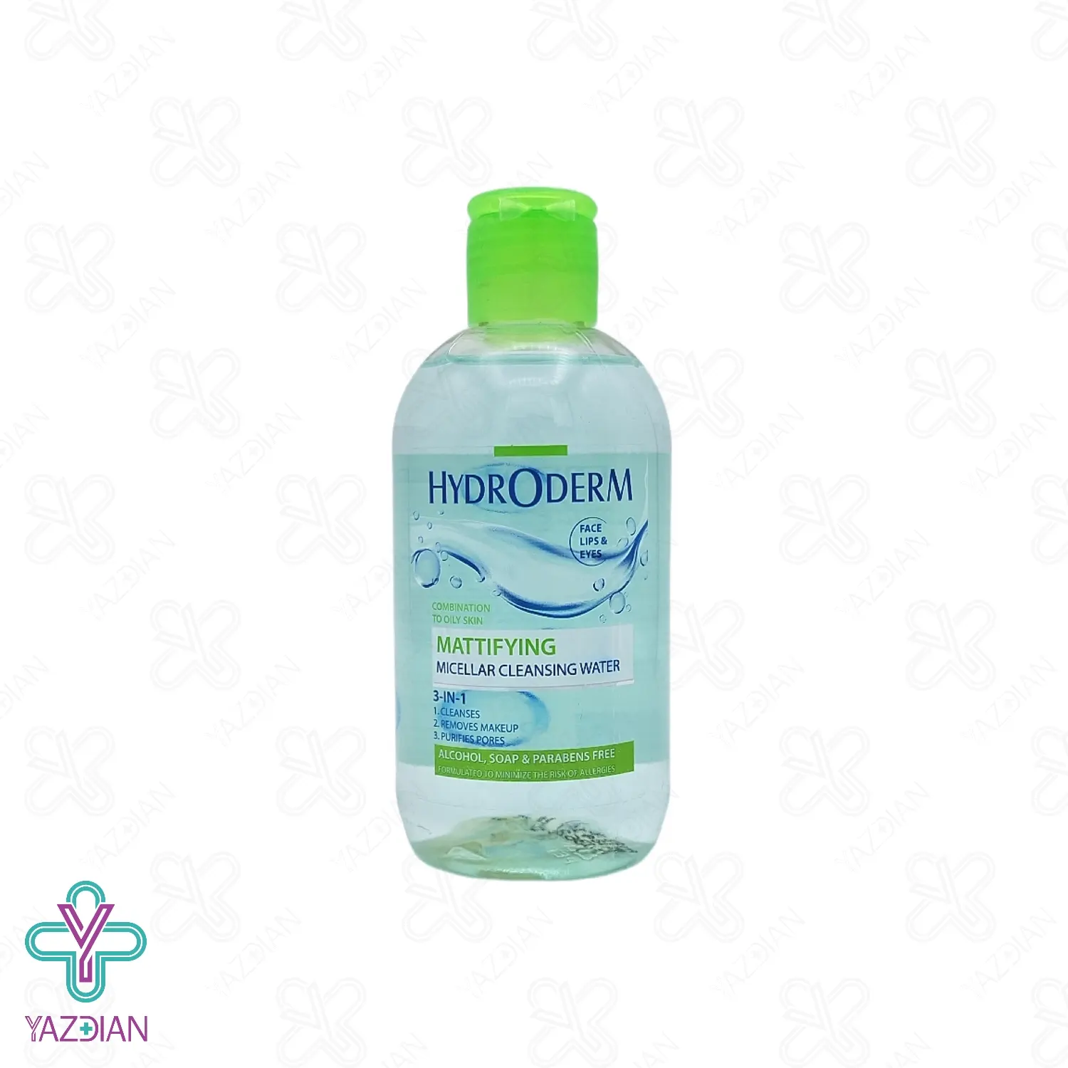میسلار واتر 3 در 1 پوست چرب هیدرودرم (Hydroderm Mattifying Micellar Cleansing Water 250 ) از بین برنده عالی غبار و آلودگیها، مواد آرایشی و چربی اضافی از سطح پوست می باشد که با نفوذ به منافذ پوستی و پاکسازی منافذ از چربی های پوستی و آلودگی ها، نقش موثری در از بین جوش و آکنه دارد. این محلول حتی قابل استفاده برای ناحیه دور چشم و آرایش های ضد آب نیز می باشد.