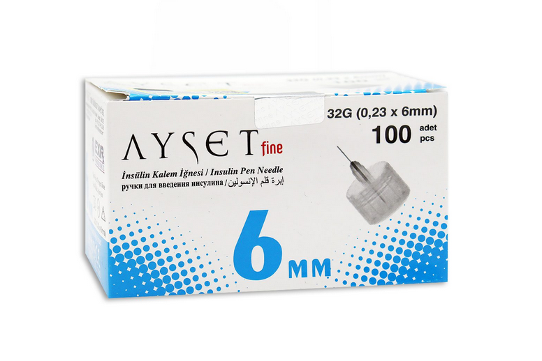 جهت تزریق از طریق انسولین به سر سوزن های مخصوص نیاز داریم این سر سوزن ها جهت نصب بر روی این قلم ها طراحی شده اند که دارای قطر و طول های مختلفی می باشند سر سوزن های قلم انسولین را با تکنولوژی پیشرفته تولید می کنند که تمام افراد در هر سنی بتوانند این تزریق را بدون درد تجربه کنند در این محصولات از روکش سیلیکونی که داریا خاصیت آنتی باکتریال و بی حسی کنندگی می باشد استفاده شده است که موجب کیفیت تزریق انسولین و پیش گیری از عوارض جلدی شده است سر سوزن قلم انسولین آیست فاین 6 گیج 32 (Insulin needle Ayset fine size 6 – 100 pcs ) یک محصول مناسب جهت استفاده در قلم انسولین می باشد که موجب تزریق بدون درد می شود این محصول با گیج 32 می باشد و اما گیج چیست؟ گیج واحد عددی است که ضخامت سرسوزن را مشخص می کند در واقع هر چقدر عدد گیج بالاتر باشد ضخامت سر سوزن کمتر می باشد سر سوزن آیست فاین موجب شده تا شما تزریق 90 درجه بدون این که نیار به بلند کردن چین پوستی داشته باشید انجام دهید این محصول یک بار مصرف می باشد بنابراین بعد از استفاده از این محصول از استفاده مجدد آن خودداری کمید همان طور که گفتیم این محصول ضخامت نازکی دارد و در نتیجه موجب شده تا شما یک تزریق بدون درد را تجربه کنید.