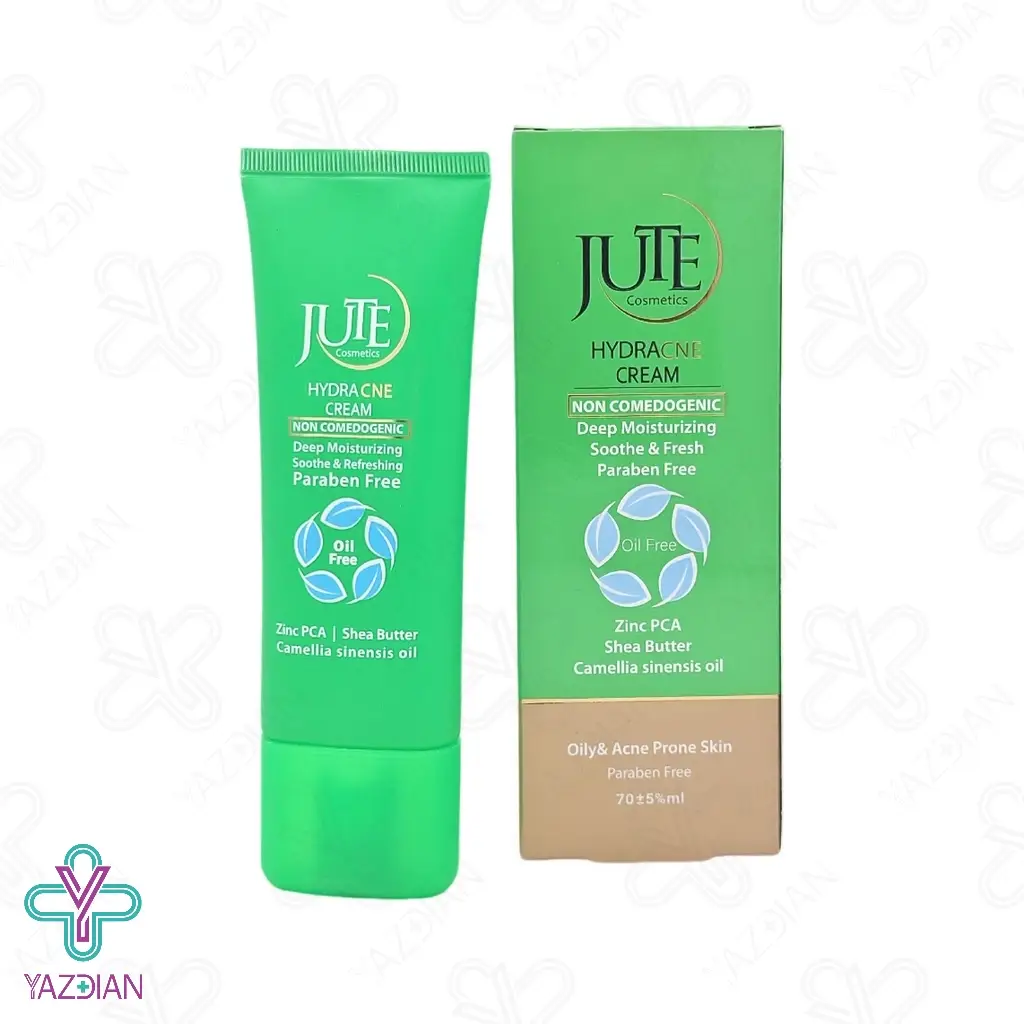 کرم آبرسان پوست چرب و آکنه ای هیدرا آکنه ژوت - 70 میلی لیتر (Jute Hydra Cream For Oily And Acne Prone Skin 70 ml) ضمن آبرسانی عمقی و اصولی پوست، میزان چربی مترشحه از سبوم پوستی را کنترل کرده و بدین صورت از بروز جوش و آکنه های پوستی جلوگیری می کند. بهره گیری از شی باتر در این کرم سبب شده است تا پوست بطور عمقی تغذیه رسانی شود و بدون اینکه شی باتر باعث سنگینی یا چربی روی پوست شود، به آن نرمی و لطافت خاصی می بخشد. زینک PCA نیز از سایر ترکیبات موثر می باشد که عملکرد فوق العاده ای در کنترل چربی پوست دارد و التهابات را نیز تا حد زیادی سرکوب می کند. روغن چای سبز نیز خاصیت ضدباکتریایی و ضدالتهابی قدرتمندی دارد و نه تنها از بروز جوش های جدید جلوگیری می کند بلکه در بهبود لک های ناشی از آکنه نیز موثر می باشد. ویتامین B5 نیز یک تقویت کننده قدرتمند لایه دفاعی پوست می باشد که رطوبت طبیعی پوست را حفظ کرده و آن را در برابر عوامل محیطی آسیب زا ایمن می سازد.