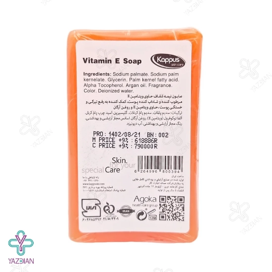 صابون ویتامین ایی انواع پوست کاپوس اسکین کر (Kappus Vitamin E Soap For Strained Skin) با دارا بودن ویتامین E و گلیسیرین در فرمولاسیون خود می تواند پوست را به خوبی تقویت کرده و ضمن نرم و مرطوب کردن پوست، از بروز چین و چروک های پوستی جلوگیری نماید.