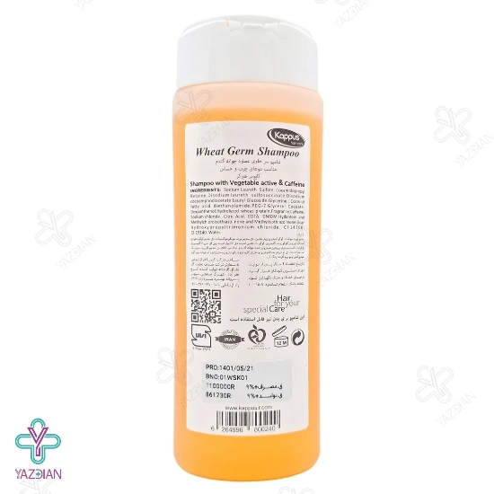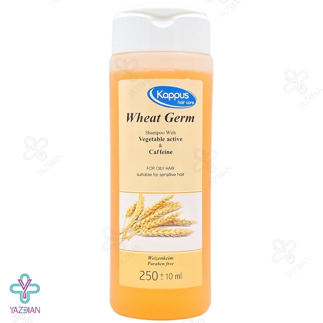 شامپو موهای چرب جوانه گندم کاپوس هیر کر (Kappus Wheat Germ Shampoo For Oily Hair 250 ml) با دارا بودن عصاره جوانه گندم و بهره گیری از ویتامین های گروه B و E موجود در این عصاره، می تواند موها را تغذیه و تقویت کرده و ضمن ممانعت از ریزش موها، چربی اضافه پوست سر و موها را نیز کاهش می دهد.