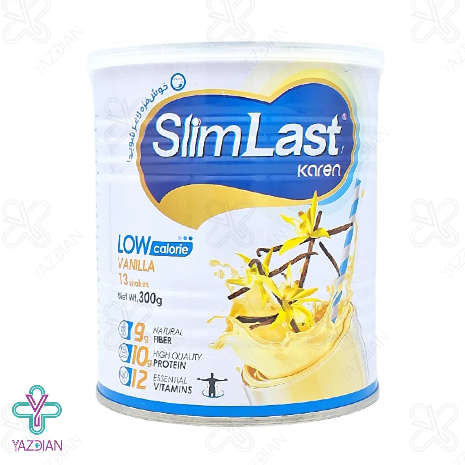 پودر لاغری اسلیم لست وانیل کارن - 300 گرم (Karen Slim-Last-1 pro. Fiber 300 g) با بهره گیری از مقادیر چشم گیری پروتئین و فیبر غذایی در فرمولاسیون خود، عملکرد فوق العاده ای در کاهش اشتهای فرد و کاهش وزن داشته و با برخورداری از ویتامین های لازم بدن در دوران کاهش وزن، کلیه نیاز های فرد را تامین می کند. این محصول در واقع فقط یک مکمل کاهش وزن نیست بلکه تامین کننده پروتئین ها، ویتامینها و مواد معدنی مختلف مورد نیاز بدن می باشد. در فرمولاسیون این مکمل هیچ گونه مواد افزودنی با اثر کاهش اشتها و پیشگیری از ابتلا به یبوست استفاده نشده است.
