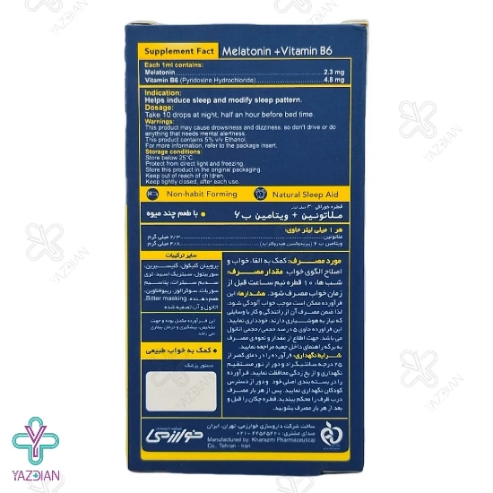 قطره ملاتونین و ویتامین ب6 خوارزمی (Kharazmi Melatonin And Vitamin B6 Oral Drops 30 ml) با دارا بودن مقادیر مناسب ملاتونین و ویتامین ب6 در ترکیبات خود می تواند اختلالات خوابی که بر اثر مسافرت های طولانی ایجاد می شود را بهبود بخشیده و ضمن القا خواب، الگوی خواب را نیز اصلاح نماید.