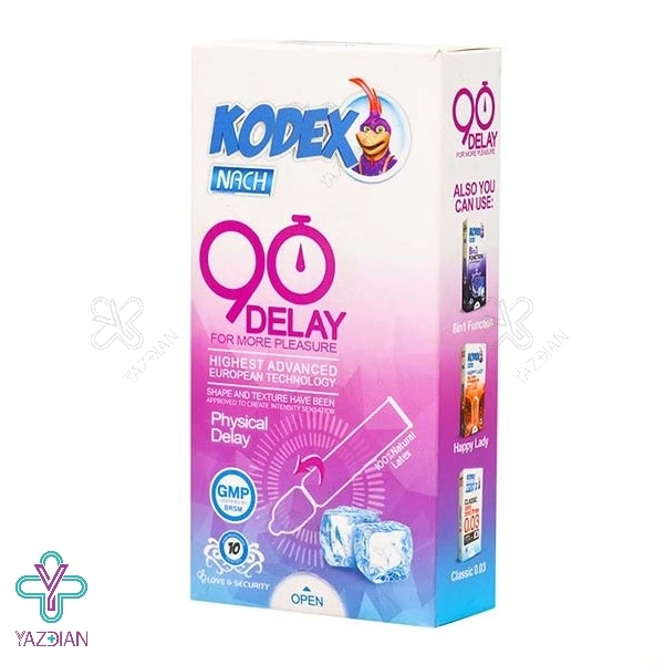 کاندوم تاخیری 90 دقیقه ای کدکس 10 عددی ( kodex 90 Delay Condoms 10 Pcs) باعث می شود تا در انزال تاخیر ایجاد شود و شخص یک رابطه ی جنسی طولانی مدت را تجربه کند.
