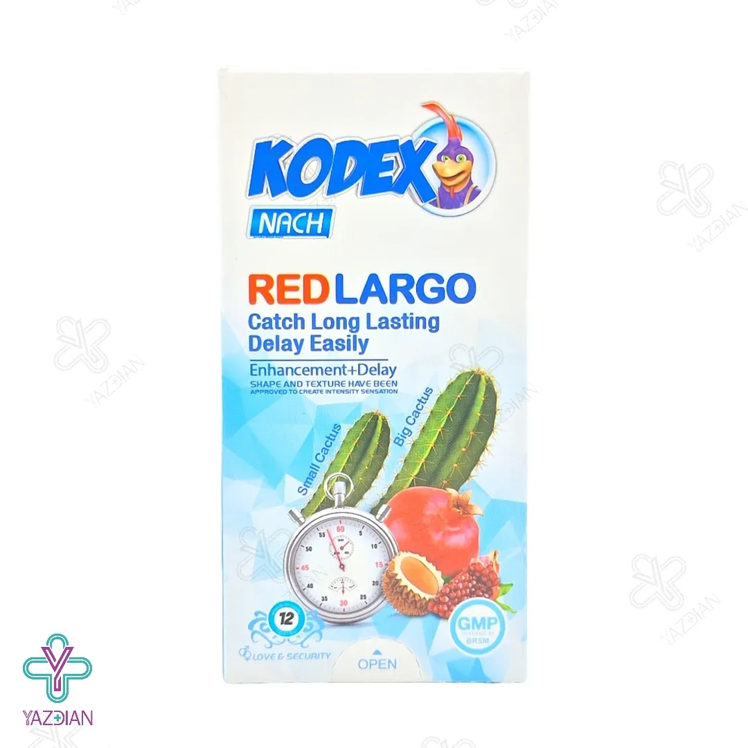 کاندوم تاخیری رد لارگو کدکس (Kodex Red Largo Condoms – 12 PCS) سبب گشودن رگ ها شده که با خون رسانی به آلت تناسلی دو طرف رابطه سبب برانگیختگی در آن ها و در نتیجه بالا بردن مدت زمان لذت جنسی می شود و خرید کاندوم کدکس بسیار به زوجین توصیه می شود. این محصول میزان خون رسانی به آلت تناسلی مردان را افزایش داده و به دلیل این که به ژل لوبریکانت آغشته شده است در نتیجه سبب افزایش حجم، سفت و بزرگ شدن آلت و به وجود آمدن لذت در دو طرف رابطه می شود.