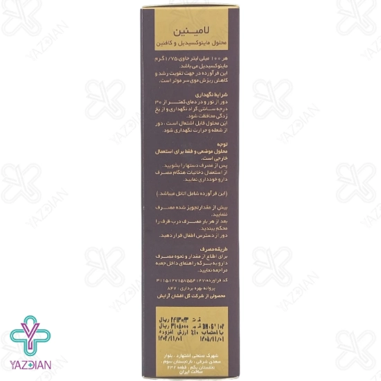 محلول ضد ریزش مو ماینوکسیدیل کافئین لامینین (Laminin Minoxidil and Caffeine Hair Lotion )، بعلت فرمولاسیون ویژه خودبا افزایش گردش خون ناحیه سر، فولیکول های مو را تغذیه رسانی کرده و استقامت مو ها را زیاد می کند. این محلول عملکرد عالی در کنترل ریزش مو ناشی از عوامل هورمونی در زنان و مردان داشته و مناسب افراد با موهای نازک و شکننده می باشد.