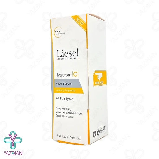 سرم روشن کننده ویتامین ث و هیالورونیک اسید لایسل (Liesel Hyaluron and vitamin C face serum – 30 ml) دارای ترکیبات موثری است که ضمن آب رسانی عمقی پوست موجب روشن و شفاف شدن پوست می شود ویتامین سی موجود در این محصول دارای خاصیت آنتی اکسیدانی بوده و از پوست در برابر اثرات مخرب رادیکال های آزاد محافظت می کند و موجب کند شدن روند پیری پوست می شود ویتامین سی موجب تحریک تولید کلاژن شده و در نتیجه موجب بهبود خاصیت ارتجاعی و استحکام پوست می شود هیالورونیک اسید موجود در این محصول توانایی نگه داری مقدار زیادی آب در خود دارد که پوست را به صورت عمقی آب رسانی می کند وجود هیالورونیک اسید و ویتامین سی در این محصول ضمن روشن شدن پوست و کاهش لک ها موجب شادابی و طراوت پوست می شود این محصول دارای بافت سبک و جذب سریع می باشد و به سرعت در لایه های عمیق پوست نفوذ کرده و هیچ گونه احساس چربی و سنگینی ایجاد نمی کند این محصول برای انواع پوست مناسب می باشد.