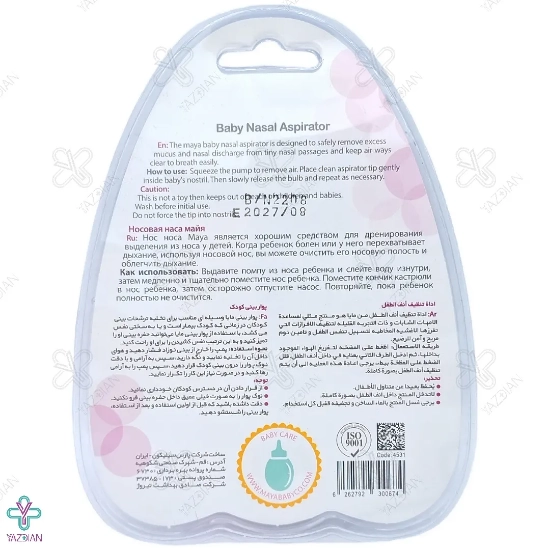 برای شستن پوار بینی کودک مایا، سر سیلیکونی پوار را جدا کنید وبعد حباب پلاستیکی را فشار دهید، تا مخاط خارج شوند.