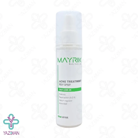 اسپری ضد جوش بدن میریک (Mayrik anti acne body spray - 150 ml) از به وجود آمدن جوش و آکنه در بدن جلوگیری می کند، از دیگر ویژگی های این محصول این است که التهاب را کاهش داده و هم چنین میزان تولید چربی در پوست را تنظیم می کند، این اسپری منافذ پوست را به صورت عمیق پاک سازی کرده و در نتیجه از بسته شدن منافذ و به وجود آمدن جوش های جدید جلوگیری می کند.