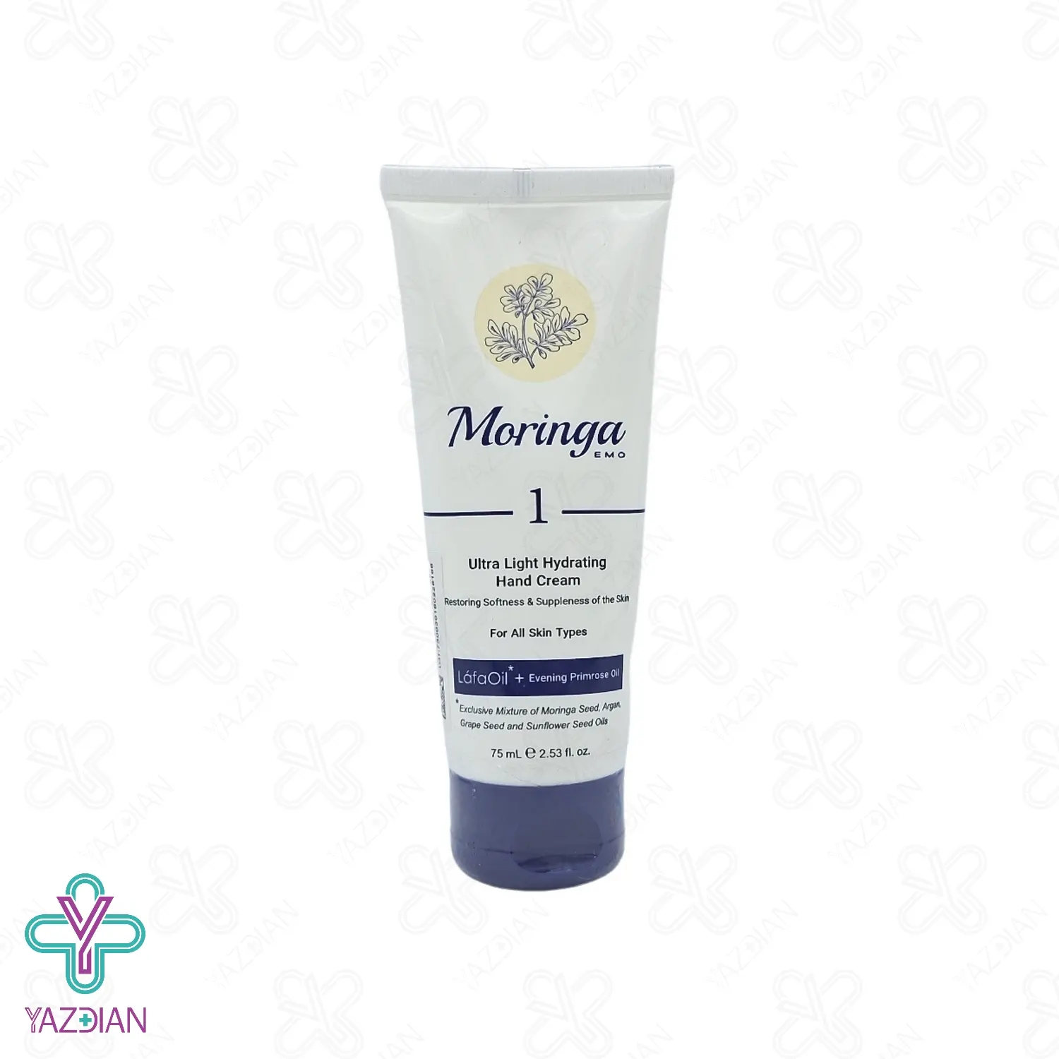 کرم آبرسان دست مورینگا مناسب انواع پوست - 75 میلی لیتر (Moringa Emo ۱ Ultra Hydrating Cream for All skin types ۷۵ ml) با بهره گیری از لافااُیل (ترکیبی از روغن های گیاهی آرگان، مورینگا، دانه آفتاب گردان و هسته انگور و ویتامین های A و E) به پوست نرمی و لطافت خاصی بخشیده و سبب جوانی و شادابی آن می شود. این کرم خاصیت آبرسانی و مرطوب کنندگی خوبی دارد و از خشکی و دهیدارته شدن پوست جلوگیری می کند. بعلاوه خاصیت آنتی اکسیدانی نیز دارد و با مقابله با عوامل استرس اکسیداتیو، چین و چروک و خطوط ریز پوستی را برطرف می کند. از دیگر خواص این کرم می توان به محافظت کنندگی آن اشاره داشت چرا که پوست را در برابر آلودگی های محیطی و نور خورشید ایمن می سازد.
