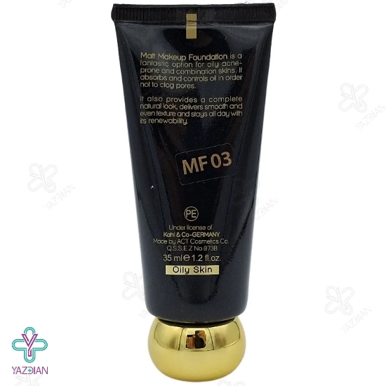 کرم پودر مات بلک دایموند مای مناسب پوست چرب شماره MF03 (My Black Dimond Velvet Matt Makeup Foundation SPF 15 Oily Skin No.MF03) یکی از لوازم آرایشی بهداشتی پرطرفدار می باشد که فاقد چربی بوده و برای پوست های چرب، مختلط و مستعد جوش، انتخاب مناسبی می باشد و می تواند از ایجاد چربی اضافه در پوست جلوگیری کرده و جلوه ای کاملا یکنواخت و مات را بر روی پوست نمایان سازد.