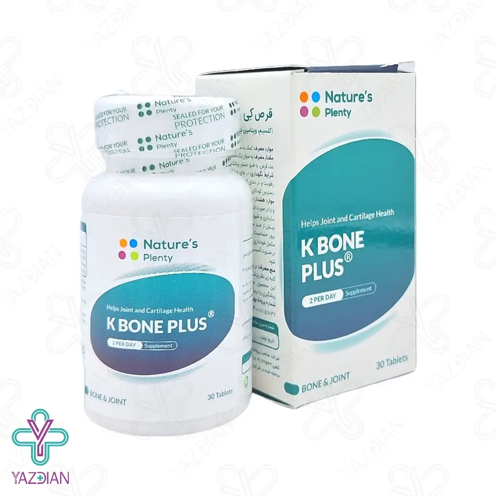 قرص کی بون پلاس نیچرز پلنتی - 30 عددی (Natures Plenty K Bone Plus 30 Tablets) یک مکمل غذایی با ارزش بالا می باشد که با بهره گیری از مقادیر زیادی از ریز مغذی ها از جمله ویتامین D۳ و K۲، کلسیم و منیزیم، عملکرد فوق العاده ای در حفظ سلامت استخوان ها و مفاصل دارد. کلسیم بکارگیری شده در این محصول به فرم سیترات می باشد که عوارض گوارشی بسیار کمتری نسبت به فرم کربنات کلسیم دارد. بدین خاطر به افراد با حساسیت بالای گوارشی مصرف قرص کی بون پلاس توصیه می شود.