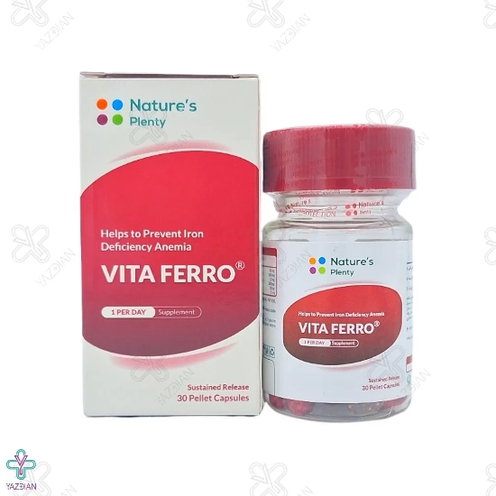 کپسول آهن ویتا فرو نیچرز پلنتی (NATURES PLENTY VITA FERRO 60 TABS) از کم خونی به وجود آمده به علت فقر آهن پیشگیری می کند. این محصول یک مکمل بوده و آهن مورد نیاز بدن را فراهم کرده و از ایجاد سرگیجه، سر درد، تپش قلب، رنگ پریدگی و عفونت های پی در پی در بدن پیشگیری می کند. از ویژگی های کپسول ویتا فرو نیچرز پلنتی داشتن خواص آنتی اکسیدانی است که باعث تقویت سیستم ایمنی بدن و در نتیجه سلامت پوست، مو و ناخن می شود.