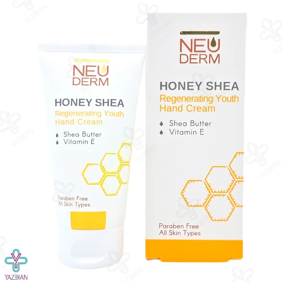 کرم دست عسل تیوپی نئودرم (Neuderm Re Nutrive Honey Shea Hand Thuppy Cream) با دارا بودن عصاره عسل، شی باتر و ویتامین E در ترکیبات خود می تواند ضمن افزایش رطوبت، نرمی و لطافت پوست، نواحی آسیب دیده و خشک پوست را به خوبی ترمیم نماید.