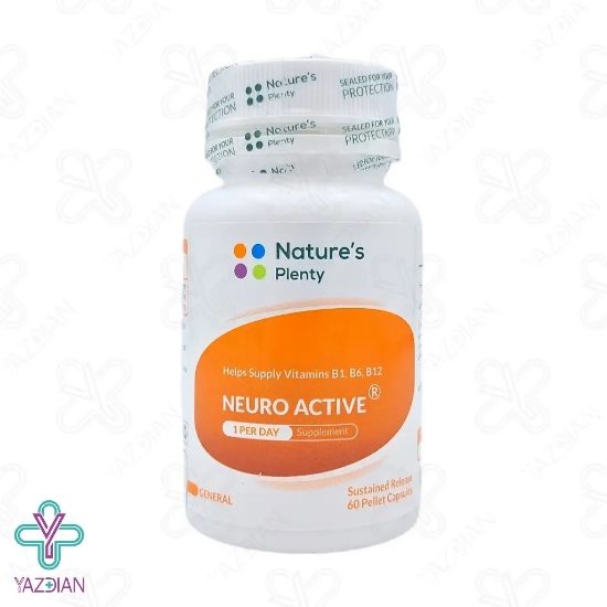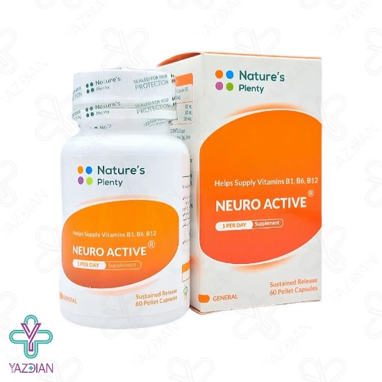 ویتامین های گروه ب نوعی از ویتامین ها میب اشد که بدن قادر به ساهت آن ها نمی باشد و از غذای روزانه جذب بدن می شود اما گاهی اوقات غذا پاسخگوی تامین ویتامین ها نبوده و باید از مکمل های حاوی این نوع ویتامین استفاده کرد، کپسول نرو اکتیو نیچرز پلنتی (Neuro active Netures Plenty Capsules – 60 pcs) غنی از ویتامین های گروه ب می باشد که موجب بهبود عملکرد دستگاه عصبی شده و هم چنین موجب افزایش سطح انرژی نیز می شود، این محصول با ترکیباتی که دارد موجب اکسیژن رسانی کافی به مغز شده و سیستم ایمنی را نیز تقویت می کند و موجب بهبود و تنظیم اختلالات خواب می شود، این محصول هم چنین ضمن حفظ سلامت قلب و عروق موجب درمان و پیش گیری از کم خونی می شود، از آن جایی که این محصول آهسته روش می باشد یعنی ماده موثره خود را به صورت تدریجی وارد بدن می کند از این رو این محصول عوارض جانبی کمتری را خواهد داشت، ویتامین ب1 موجود در این محصول موجب تولید انرژی جهت بازسازی عضله شده و هم چنین خاصیت آنتی اکسیدانی دارد و از بدن در برابر اثرات مخرب رادیکال های آزاد محافظت می کند، ویتامین ب6 نیز نوع دیگر از گروه ویتامین ب موجود در این محصول می باشد که موجب تقویت سلامت اعصاب شده و بهبود عملکرد سیستم عصبی نیز کمک می کند، ویتامین ب12 موجود در این محصول موجب افزایش سطح انرژی می شود.
