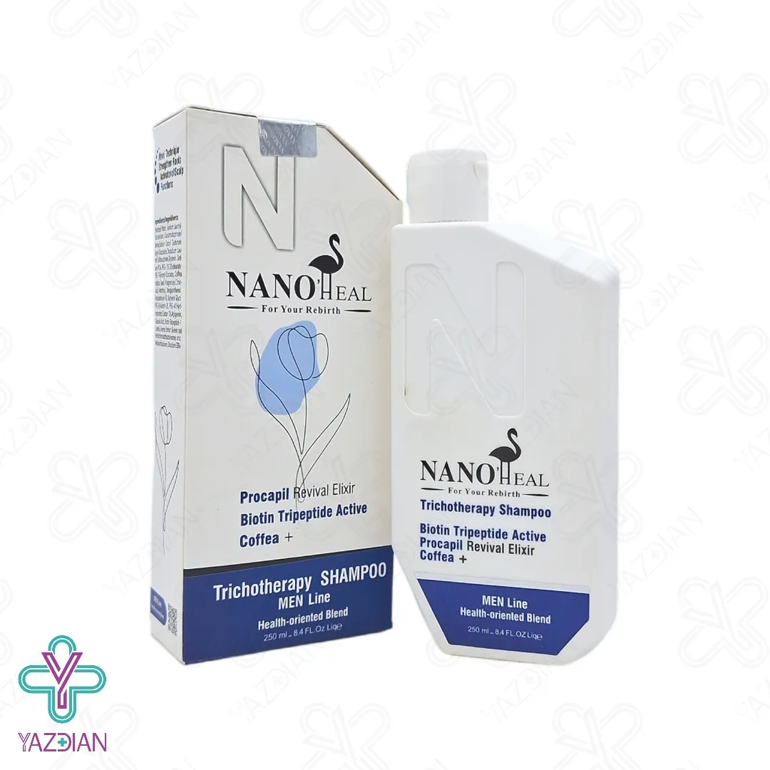 آقایان به علت های مختلفی مثل افزایش سن، شرایط پزشکی، وراثت و تغییرات هورمونی دچار ریزش مو می شوند به همین دلیل استفاده از یک محصول مناسب توصیه می شود، شامپو تقویت کننده و ضد ریزش مو آقایان نانوهیل (NoNo Heall strengthening and anti - hair loss shampoo for men - 250 ml) پوست سر و مو را از انواع آلودگی و چربی پاک سازی می کند، از دیگر ویژگی های این محصول این است که باعث رشد دوباره ی تارهای مو شده و هم چنین ضخامت و حجم مو را افزایش می دهد، این شامپو خنک کننده و طراوت بخش پوست سر بوده و نیز تارهای مو را استحکام می بخشد، پروکپیل از ترکیبات موجود در این محصول بوده و نقش تاثیرگذاری در مهار فعالیت آنزیم 5 آلفا ردوکتاز که عامل ریزش مو است می شود، کافئین از دیگر ترکیبات به کار رفته در این شامپو بوده و سبب خون رسانی به پوست سر و نیز تغذیه ی فولیکول و رشد موی سالم می شود، وجود بیوتین تری پپتید نیز با پیشگیری از تولید دی هیدروتستوسترون سبب رشد موها می شود.