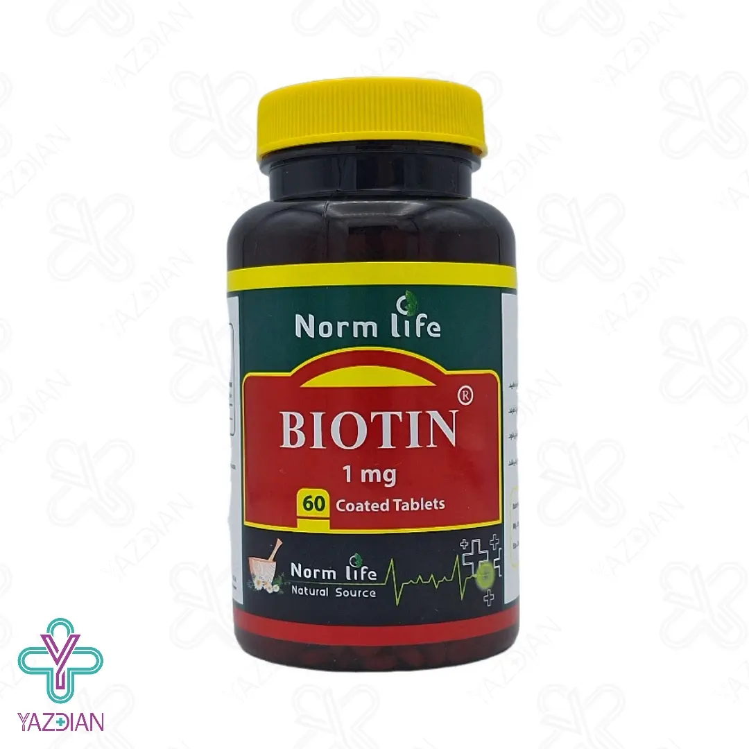 قرص بیوتین 1 میلی گرم نورم لایف (Norm Life 1 mg Biotin tablet ) که نام دیگر آن ویتامین H یا ویتامین B7 می باشد از ویتامین های گروه ب و محلول در آب بوده که نقش مهمی در رشد و تقویت مو دارد و موجب حفظ سلامت مو و مانع از شکنندگی و ترک خوردگی آن می شود، هم چنین با تقویت ریشه مو از ریزش و کم حجم شدن موها نیز جلوگیری کرده و با تقویت فولیکول های مو مانع از ایجاد موخوره می شود،بیوتین با عملکرد نوسازی سلول ها در پوست موجب تقویت پوست شده و از پیری زود رس آن جلوگیری کرده و موجب نرم ولطیف شدن پوست می شود و با حفظ رطوبت در پوست مانع از خشکی و ترک خوردگی شده و با دارا بودن خواص آنتی اکسیدانی که دارد از پوست در برابر عوامل خارجی محافظت کرده و مانع از ایجاد چین وچروک پوستی می شود.
